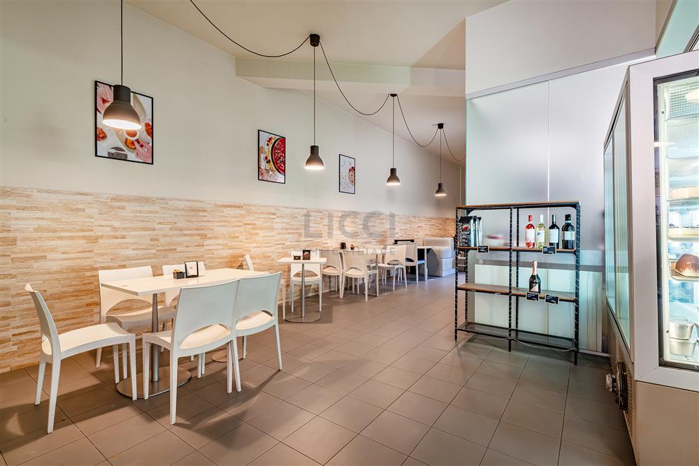 All’ interno del locale ci sono circa 40 coperti disponibili in due ambienti distinti mentre all’esterno insiste un Dehors di 24 mq che consente l’utilizzo di circa 20 coperti.