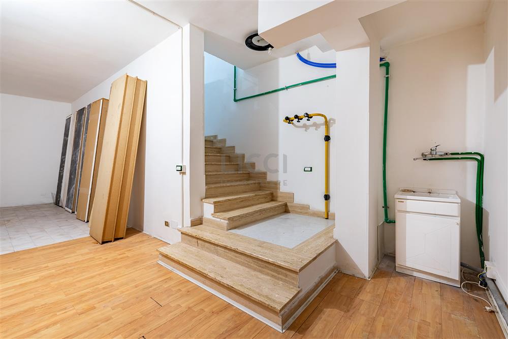 Piano terra di 94 mq, con una vetrina fronte strada, ideale per attività commerciali, studi o negozi.