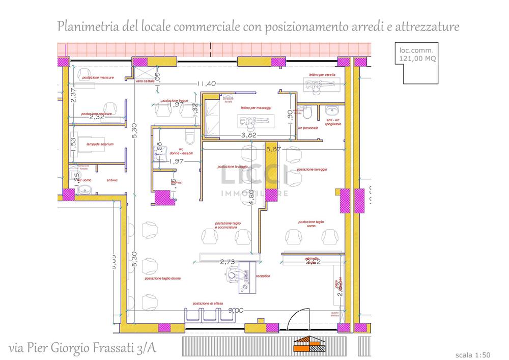Attualmente predisposto per attività di parrucchiere o centro estetico (impianti e distribuzione interna già presenti), si presta però perfettamente anche ad altre destinazioni d’uso: